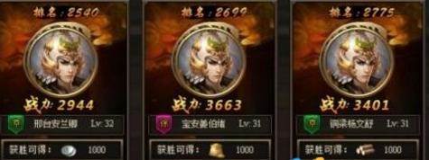 这里还有个小技巧可以提升胜率,可能那些靠后的都没什么阵容要求,但是到了前20以后,就不能再随便来了,大家在挑战之前,点击他的头像,就可以显示出出战的阵容,考虑到兵种的克制关系,我们可以有针对性的去调整好阵容,让自己占据主动的位置!