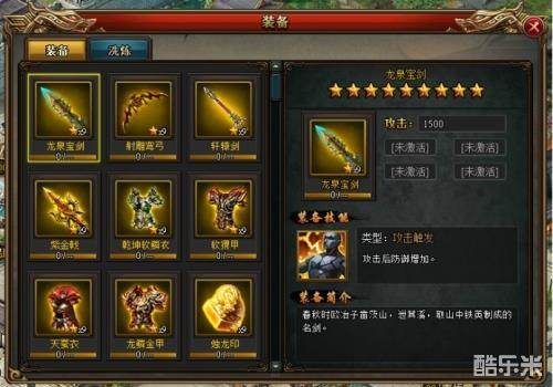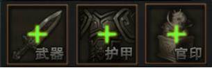 游戏内的装备分为三个大类,分别是:武器、护甲、官印。