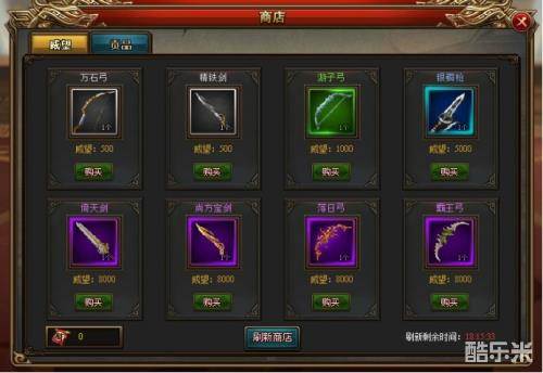竞技场内的威望商店里也有概率刷新出极品的装备,主公可以消耗威望购买。