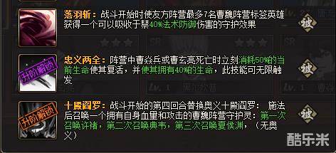 在几个被动技能中,第二个技能“忠义两全”看起来最为特殊,简直可以说是bug,无限触发意味着可以无限重生,不过实际效果如何还需要经过多次的战斗才能验证。