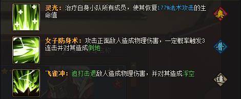 相较之下,夏铃的攻击能力就弱了一些。技能有“女子防身术”和“飞雀冲”,都是物理攻击技能,战斗时只能给敌人普通的攻击伤害,没有特殊的伤害效果。