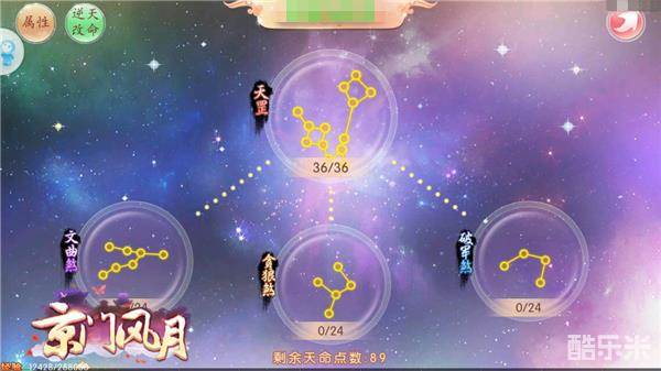 京门风月的主要剧情中,谢芳华的人生转折就是从逆天改命开始.而京门的主子们也可以通过天罡星图来改变自己的实力状况,逐步小幅度的提升战力,天罡星是命运的开端,天命点数决定点亮的程度,也许在你点亮整张星图后会发现在不知不觉中,整体战力有了翻天覆地的变化.攻击、防御、会心、增伤等等提升,正是主子们都在追求的,这阶段所有的提升都很均衡,直到最后点亮末尾的文曲、破军和贪狼,可以专门针对各属性进行有计划的提升啦.