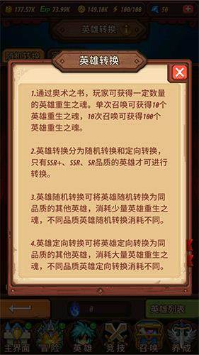 英雄界的豪门阵容 满足收集控 值得一提的是,本作在游戏中加入了比较少见的英雄转化功能,玩家可使用重生之魂(奥数之书抽取获得)将自己不用的SSR+、SSR、SR品质的英雄转换为其他同品质的英雄,可以说是非常贴心的系统了。