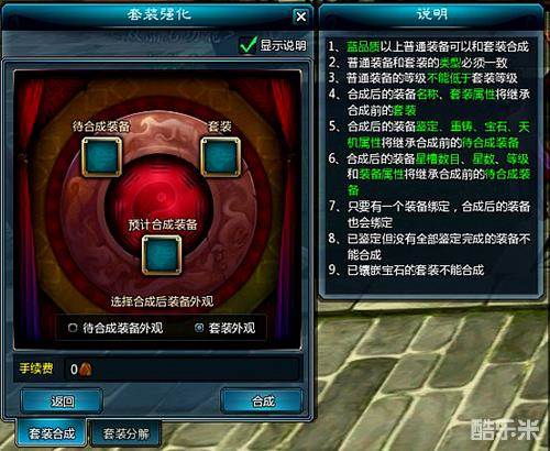 当玩家拿到鉴定属性很好的装备时,可以进行套装合成的操作。把你想要合成的套装放在右边,然后再把你想要的相同部位、相同职业、等级不低于套装等级的属性优秀的装备放在左边,最终就能合成出拥有优秀属性的套装啦,预计合成装备可以预览即将合成的套装。