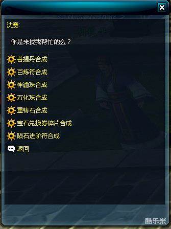 通过道具合成,可将低等级的菩提丹、百炼符及百炼符碎片、神谕珠碎片、万化珠碎片、重铸石碎片、宝石兑换券碎片、陨石进阶符碎片点进行合成。玩家在合成时只需要选择需要的对应项,将对应的道具放入即可进行合成。
