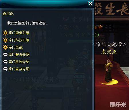 除宗主外,宗门拥有一级宗门成员、二级宗门成员、三级宗门成员、商务长老、长老、副宗主6种不同的职务,不同职务拥有相应的权限。玩家可按P键可以进宗门管理或查看。