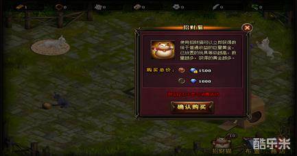 最后一个图标就是“招财猫”了,点击按钮后,如图三所示。当然招财猫是要用z买的,绑定钻石1500买一