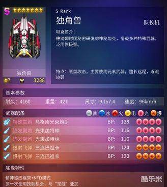 在机战坦克中独角兽武器除了主炮其他命中感人,输出完全指望不上,唯一能看的只有底盘,配合技能强大的人有奇效。配件:低配元素核心\光束弹、高级弹\、高配好吧我不知道、武器方面,特殊、连发、爆射都有,导致辅助方面选择困难,至于高配,我想没有人会把紫配放在这车子上(壕论外)。机师:松山晴子\琴、双加血,双加伤,仅此而已。