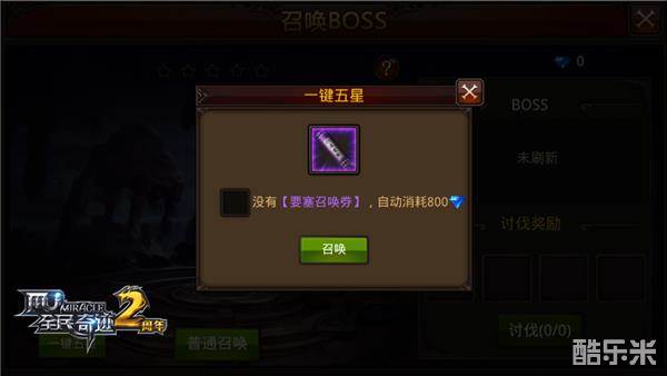 "一键五星"的好处人人皆知,但想要使用这一新增功能,却并非那么简单.在即将到来的《全民奇迹MU》3.0大版本之中,玩家们需要凭借拥有的"要塞召唤券"才能够使用新增的"一键五星"功能,直接获得挑战五星最强BOSS的机会.当然,若是大伙儿手中"要塞召唤券"的数量不足,也可以使用800钻石进行替代,从而使用"一键五星"功能.