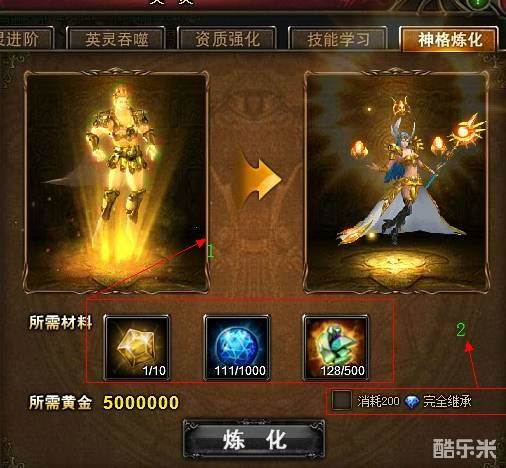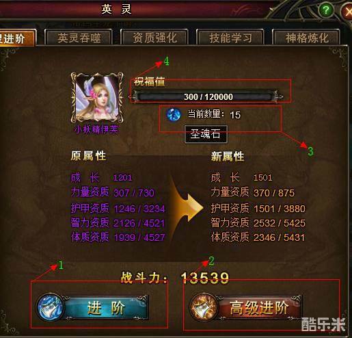 1、进阶:耗圣魂石1个,获得祝福值10点,出现祝福有50点;