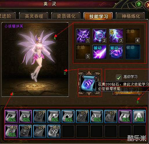 高级学习:除了消耗技能,还需要消耗200钻石(系统提示,鼠标移动勾选的位置有相关介绍);勾选学习的时候也会有提示;