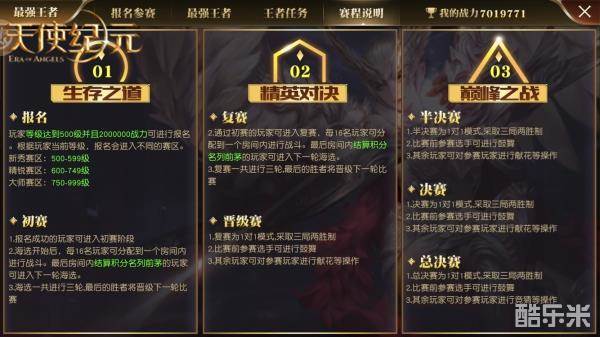 为了对决更加公平,所有参与“最强王者”的高手都依照等级被分为新秀、精锐、大师三个赛区。在这场热血赛事中,勇士们将进行16人混战的初赛和复赛,积分名列前茅的才可以胜出晋级下一轮;能够进入决赛进行1V1终极对决的勇士,必然是万中挑一的强者。而获得最终获胜的勇士可以赢取全新坐骑“黄金巨龙”和“王者武器”!