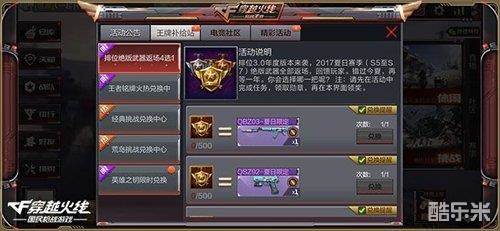即日起至7月31日,2017夏日赛季绝版武器全部返场,QBZ03-夏日限定、QSZ92-夏日限定、尼泊尔-联赛S1冠军版、沙鹰-联赛S1冠军版四把武器再度来袭!错过今夏,再等一年,快来带走你喜欢的绝版夏日武器吧!