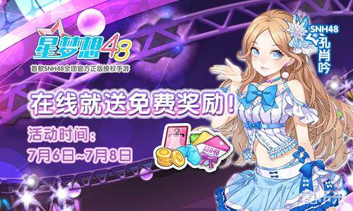 7月6日、7月7日、7月8日期间,每日累计在线,有服装劵,金币,和100钻石奖励哦,准点在线还可获得大量金币与粉丝卡!免费好礼相送,不氪金也能钻石十连,更有高级粉丝卡好礼,助力星光偶像养成之路!