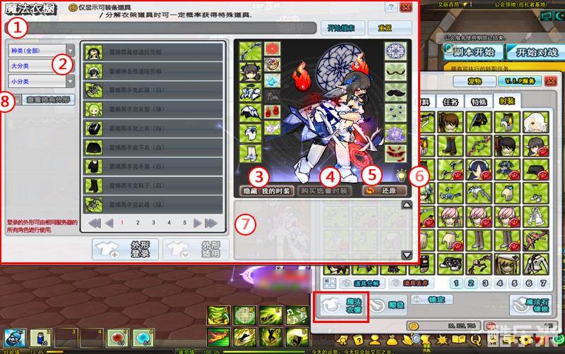 1、点击背包窗口的“魔法衣橱”按钮,可弹出该系统UI界面。