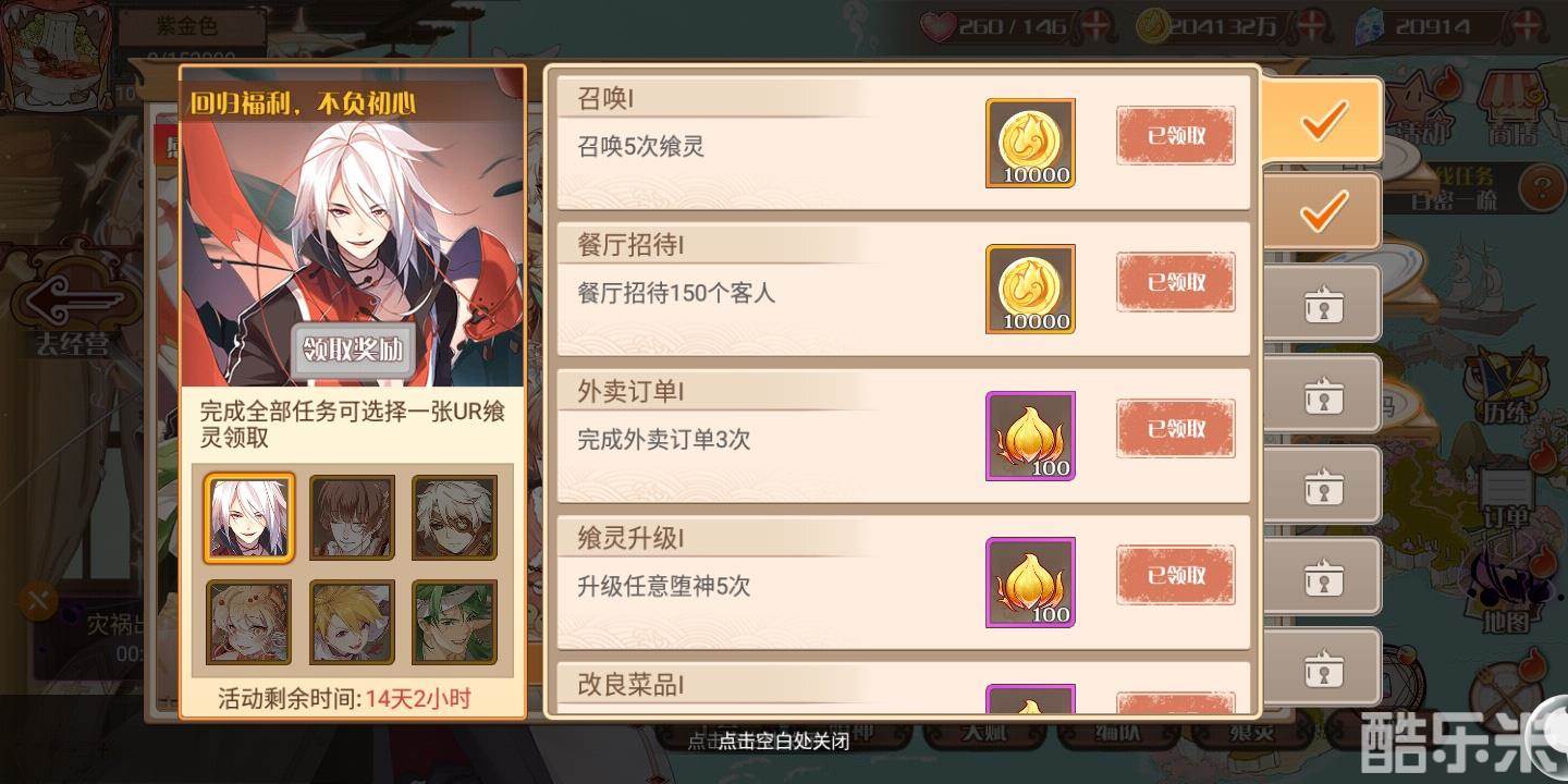 不只是卡牌的丰富,新版本中游戏还同时上线老玩家回归活动,并回馈相应的丰厚奖励。回归的老玩家在进行系统原有的主线任务、冒险闯关、餐厅经营之余,还可以选择完成系列的专属任务。使老玩家快速跟上游戏的进度,与小伙伴们共同愉快的玩耍。