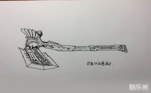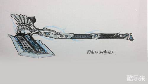 没上色的天使手斧看起来就是这样的,很容易发现画手还是很细心的。尤其是天使系列的那个标志人头,简直跟游戏中的一模一样!那我们来一起看上了色的天使手斧有多炫酷吧!