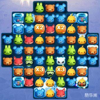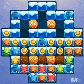 3、冰块的数量较多,寻找和收集kitty需要大量的步数。所以我们还需尽量连取特殊棋子,并将它们进行组合交换。利用特效组合的大范围攻击,可以一次性清除大量冰块,更快的找到或收集kitty,让我们的通过关卡变的更加轻松。