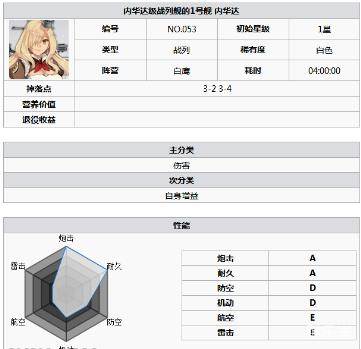 内华达评价:内华达也是非洲人偷渡失败的产物,基础属性值不低,技能加强或许会有玩家进行培养,前期战列舰属性差距不大时可以用作过渡。