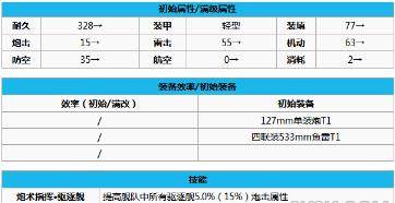 2、技能比较中庸,没有什么太好的特点,驱逐本身对炮击属性要求不是很高,主要是靠鱼雷和专属弹幕。