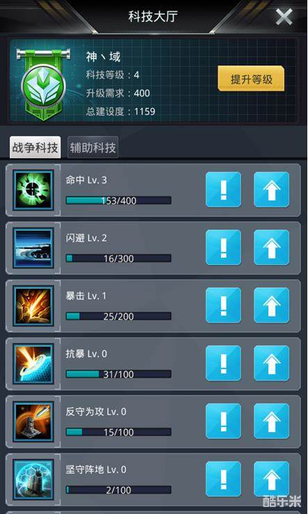 军团科技分为战争科技和辅助科技。其中战争科技能大大加强部队作战能力,包括暴击,增伤,减伤,闪避等,前期建议由军团长统一,一起升级一个科技,这样集中研究比较好,个人比较推荐闪避。辅助科技则能提升资源产量,战斗经验,载重,仓储,载重,这里个人推荐战斗经验,载重,仓储,资源生产上升1%说实话影响不大。