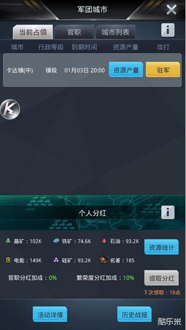 军团城市是军团一大福利。城市战每周2,4,6八点开启,九点结束。每个军团只能占领1个城市,故而选择好目标全力进攻就好。军团主力七人进攻中间,其余人抢东南西北四线。一般没有强力军团抢的话拿下不难。这里要注意一点,一个城市一个部位只能1个部队,多了自动返回。