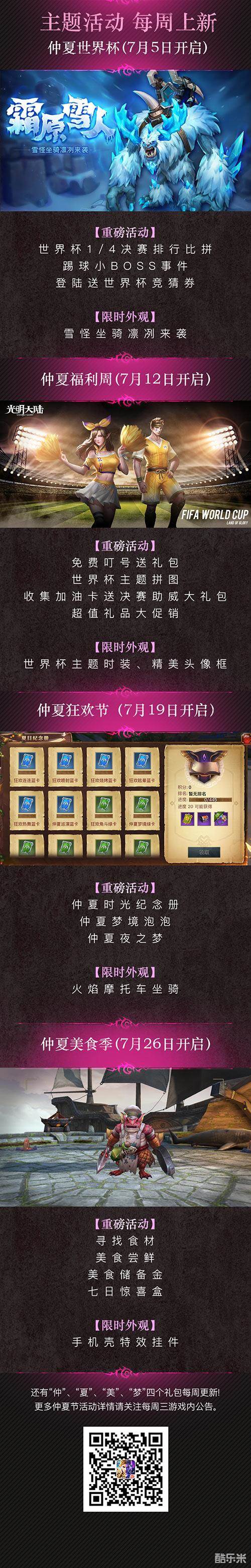 死灵骑士重生归来,《光明大陆》新职业资料片【灵魂挽歌】7月开启仲夏狂欢!全新模式开荒竞速、新副本“空袭萨达尔”两大重磅更新带你玩转七月。更有仲夏世界杯、仲夏福利周、仲夏狂欢节、仲夏美食季四大主题活动,每周福利开启。让我们一起走进玛瑟兰德的这一场仲夏美梦,享受惊喜不断的福利和狂欢吧!