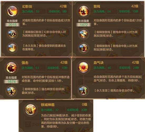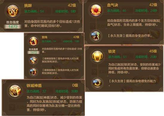 坦克型的思路就是无脑肉,能够承受的住伤害,能够嘲讽住怪。故搭配以下几个技能:挑衅+血气决+致残+锁灵+铁城神盾