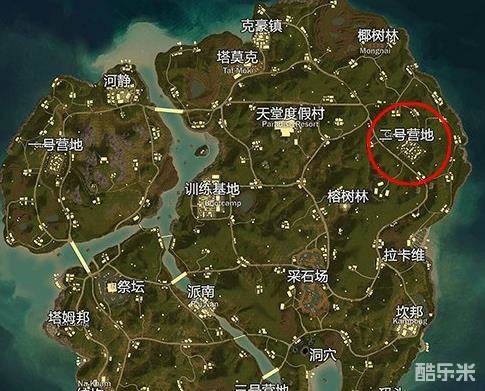 二号营地在地图的右边,周围有一个榕树林,因此从二号基地出来的人很容易跟榕树林的人遇到一起。所以玩家从二号营地出来不要直接往榕树林走,很容易被埋伏,可以考虑向下稍微绕一点点。