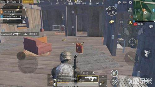 遇到对手进攻建筑需要注意,不论对手如何走动和卡点,一定要与位置保持同步。具体为房屋外敌人处于什么位置,那么我们就尽可能贴着敌人的那一面墙壁。目的在于可以有效规避对手借助第三人称获取我们的视野。其次,在雨林地图中茅草屋内普遍都会比平底高出一定距离,大多数外部敌人如果准星调整不当,很容易打在窗户上。而我们处于建筑内部因为地势高的缘故,在一般不会出现子弹打在窗口上的问题。