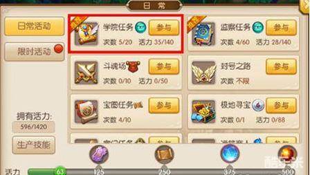 学院任务比较简单,而且是一个不限制时间的任务,玩家可以随时进入任务活动中,然后去完成。但是这个任务想要彻底完成需要战斗20次,总的来说耗时比较长,而且玩家的等级必须达到15级以上才能进入学院任务。