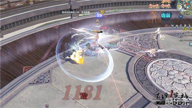 该阶段唐青枫会施展高频率普通攻击,矩形范围攻击,以及伴有红色预警提示的圆形范围伤害技能,该技能打击面积极大,只有处于空气墙边缘才不会被波及,所以需要利用三段跳来及时躲避。