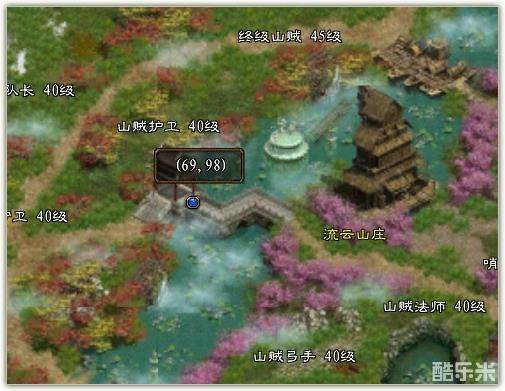 在“流云山庄”地图的左侧,坐标(20, 117)附近。