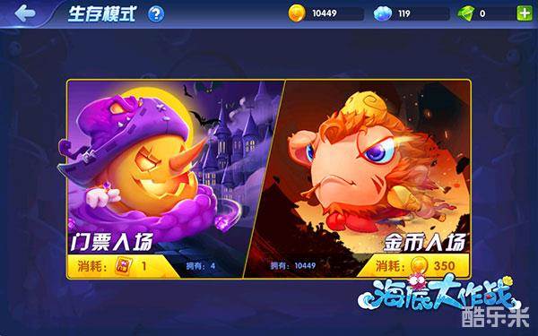 生存模式是到达9级才能解锁的玩法。在生存模式下,成绩仍然是按照体重排名确定的。和自由模式不同的是,每条战鱼出场时有三点生命值。每被吃一次减少一点生命值,每吃别人一次增加一点生命值,生命值归零会直接退出游戏。物竞天择,适者生存,海洋就是这样残酷。