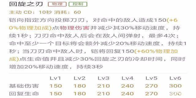 解析:铠扔出刀刃,在敌人中间来回弹射,最多四次,对敌人造成减速,同时回复自身血量并减少该技能的冷却时间。该技能的回血效果在前期守塔时非常有用,在后期血量回复显著,大大增强了铠的续航能力。减速效果在追人、留人以及逃跑时都可以起到一定的作用。该技能操作比较简单,在命中率方面稍加注意一下即可。建议前期主加该技能。
