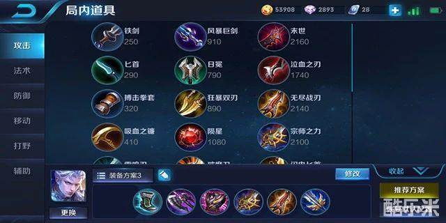 破军:增加高额物理攻击力,主要是为了瞬间秒掉脆皮,破军显得尤为重要,一技能的回血在后期已经非常有效,坦克英雄也没办法抵挡住既有输出又能回血的铠。