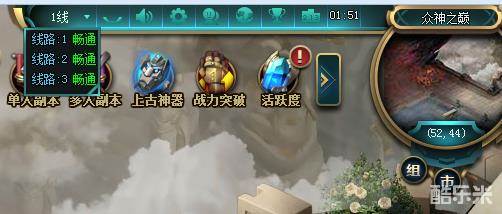 点击换线按钮,可以切换玩家所在地图的线路。当同一条线路所在人数过多时,场景载入可能非常缓慢,玩家也会感觉到卡顿,这时切换到别的空闲的线路,可以避免拥挤。