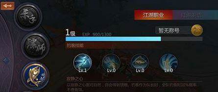 我们可以看到江湖职业有摸金、钓客、镖师和杀手。摸金职业选为专精后可以在探宝中获得更多收益,钓客选为专精并做钓鱼队长后,等级越高,额外收益就越高。