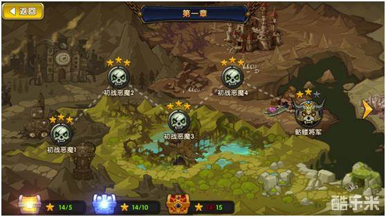 每一个章节点有星级评定,当一个大章获得星数到达一定数量时,便可以领取星级宝箱。