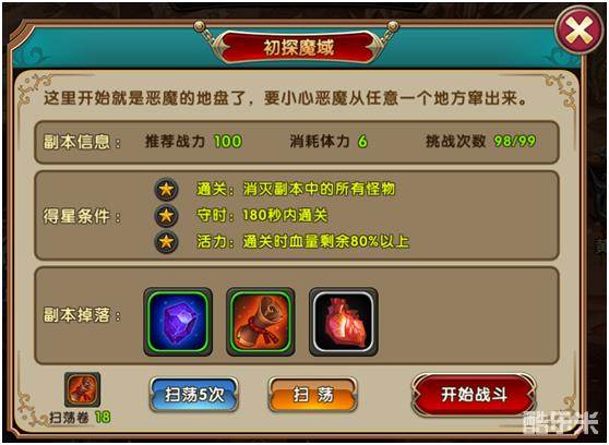 副本获得:经验、金币、强化石、装备强化材料、扫荡卷
