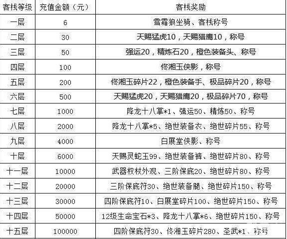 从表格中可以看出,客栈给予的奖励还是相当丰厚的
