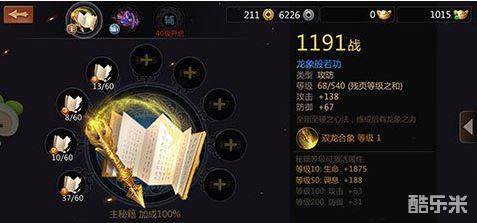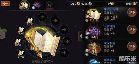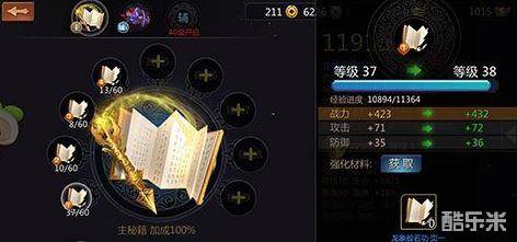 玩家的每个角色可以装备3本秘籍,第一个为主秘籍,后面两个为辅秘籍,主秘籍属性加成100%,辅秘籍1属性加成30%,辅秘籍2属性加成20%,两个辅秘籍的开启等级分别是35和40级。