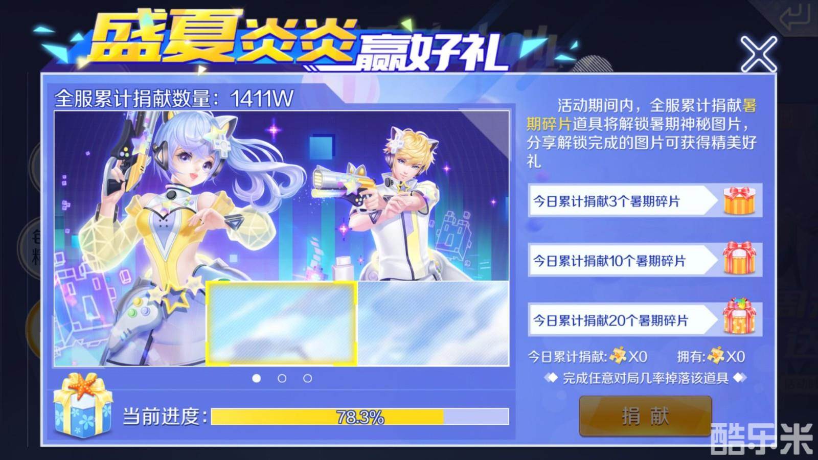 活动期间,小主人们完成任意对局有几率掉落暑期碎片!捐献碎片可解锁暑期神秘图片,获得礼盒~还能开出光效时装碎片哦!