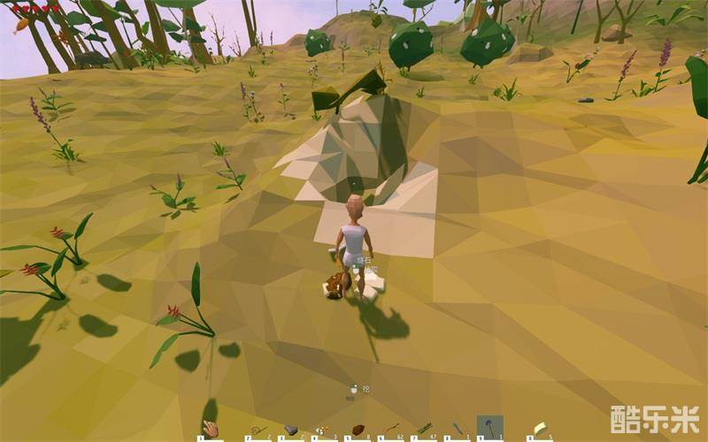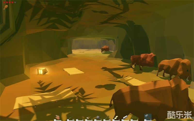 通过前期制作出的“石斧”来击杀野猪、兔子、羊等没有攻击性的动物,击杀后可以获得动物皮以及动物肉,如果实在很饿,可以直接吃生肉以及水果等食物来填充肚子。