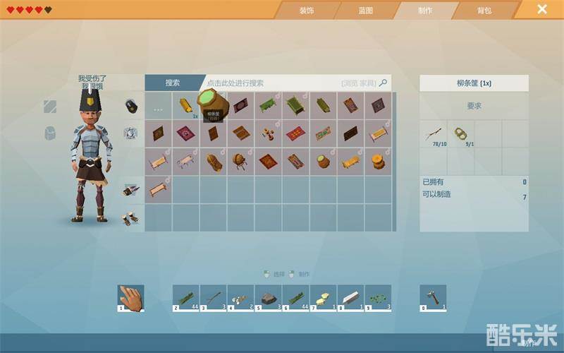 制作简单的容器,可以把背包中多余不用的材料暂时收纳进去,为仓库背包节省空间。也可以收集更多的材料放置容器中进行储存,以备不时之需。