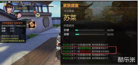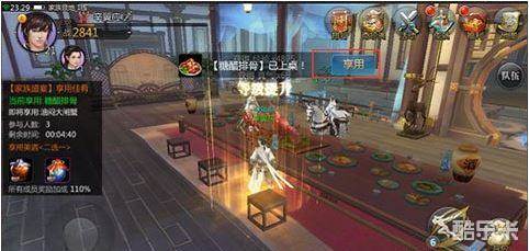 享用美酒后,可以享受家族盛宴的加成哦~正所谓,人在江湖飘,哪能不吃饱!各种【麻辣小龙虾】、【糖醋排骨】等珍馐美味上桌,真是应接不暇!热腾腾的菜肴上来后不仅增加经验,同时也增加真气哦!可谓是一举多得的好活动!