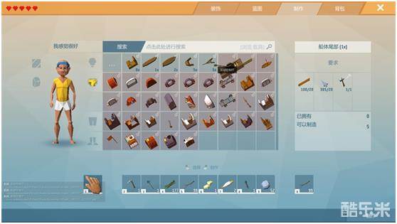 船舵的所需材料:x10原木、x10钉子、x10绳子、x1任意斧头、x1任意锤子