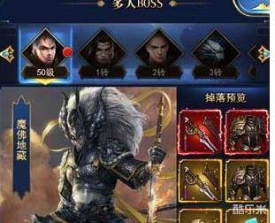 这个就是多人boss的选择界面了,在这里点击上面的等级区分可以选择不同的多人boss进行挑战。右边可以预览掉落的物品。