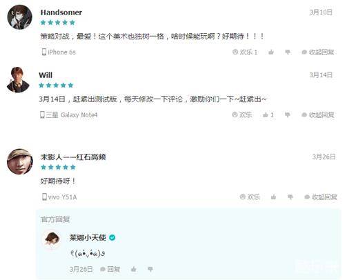 《战地指挥官》从测试开始,就在Tap Tap上获得了不少好口碑;测试期间,评分一直处于9.2以上,从上线前用户的留言也可以看出,玩家对于这款游戏非常期待,官方一直都有在评论区与玩家互动,也让玩家对于这款游戏的好感度非常高。