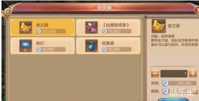 出售的物品只有四样,金兰谱、《仙魔秘闻录》、命灯和花雕酒,均使用银币购买。